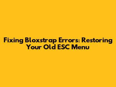Fixing Bloxstrap Errors: Restoring Your Old ESC Menu
