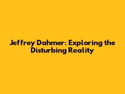 Jeffrey Dahmer: Exploring The Disturbing Reality